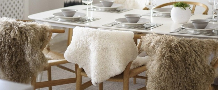 - Umístěte kožešinu na sedací část lavice nebo židle v jídelně. To nejen zvyšuje pohodlí, ale také dodává prostoru útulný vzhled.