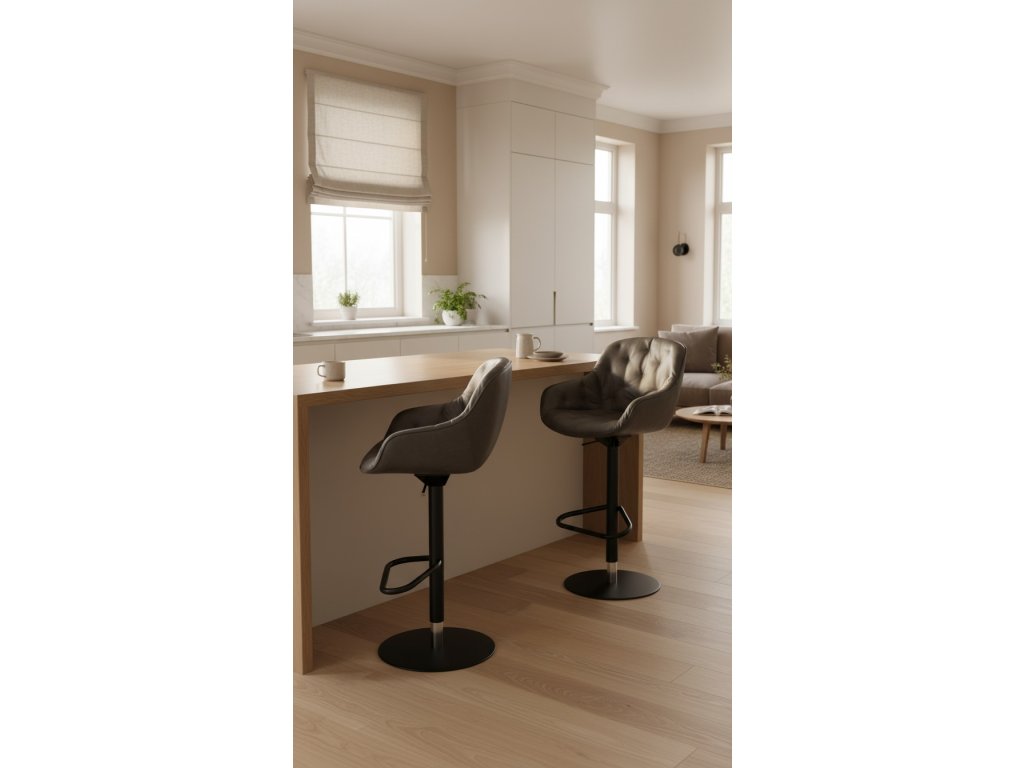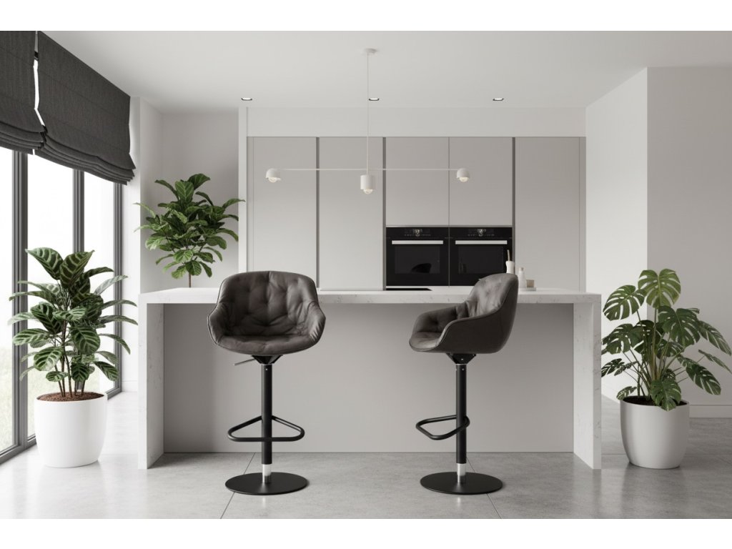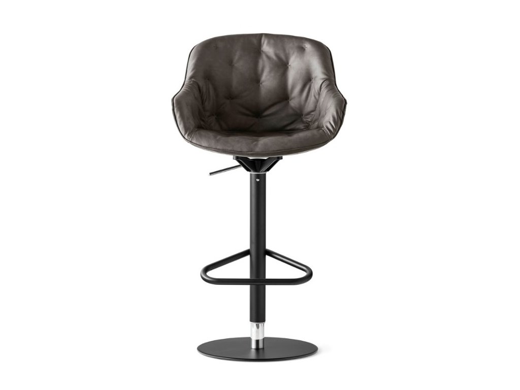 Barová židle Sweel přináší do jídelen pohodlí a praktičnost: je výškově nastavitelná a otočná, její naducané sedadlo a opěradlo komfortně usadí každého milovníka barovek.