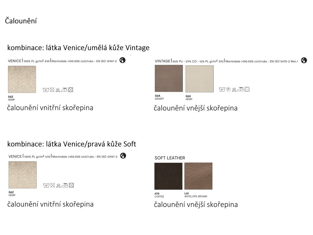 | Čištění potahu: | podle zvolené látky nebo kůže |