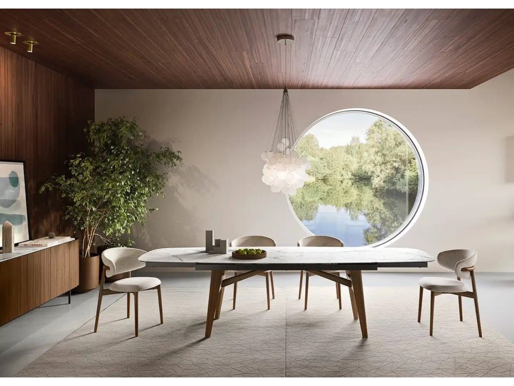 pokud chcete do jídelny přidat hřejivé dřevo a útulné organické tvary, je stůl Abrey dokonalou volbou.