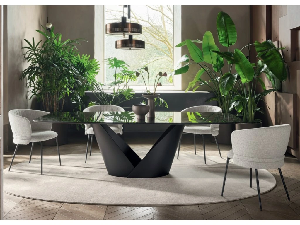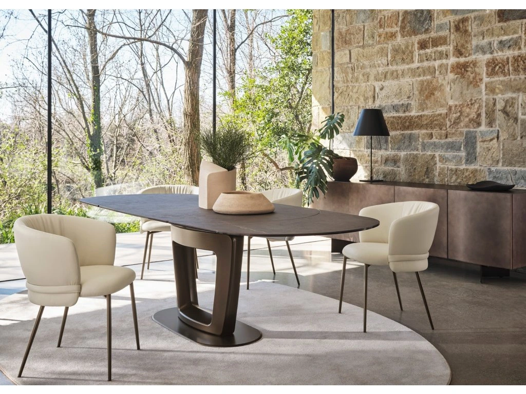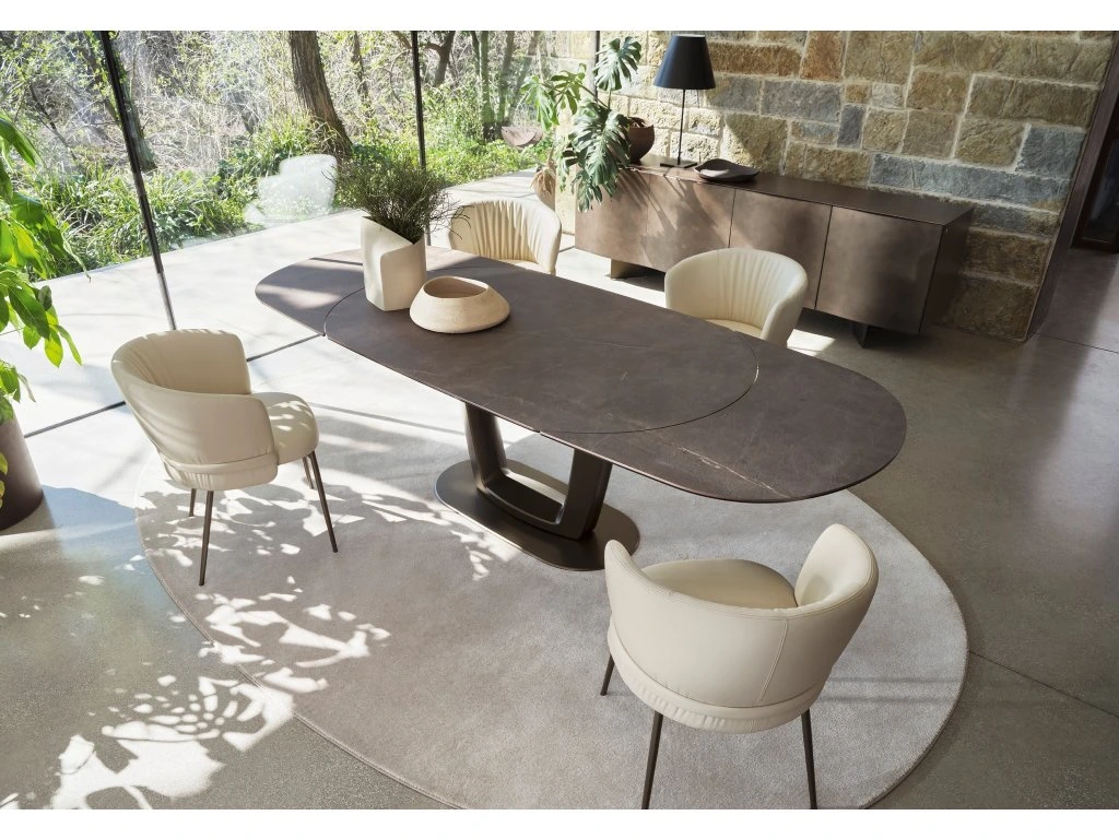 Rozkládací stůl se skleněnou deskou Orbital kombinuje špičkový design a technologii: pokročilý automatický rozkládající systém, díky jemuž se jedním pohybem jeho kovových ramen...