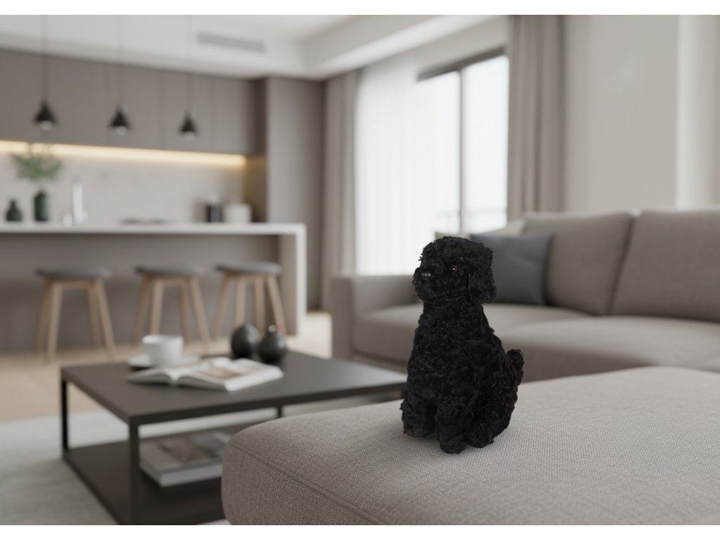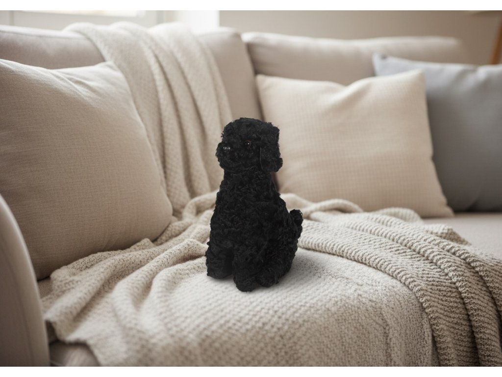 Kožešinový pes Zorro černý, výška 35 cm, kudrnatá kožešina Curly Black