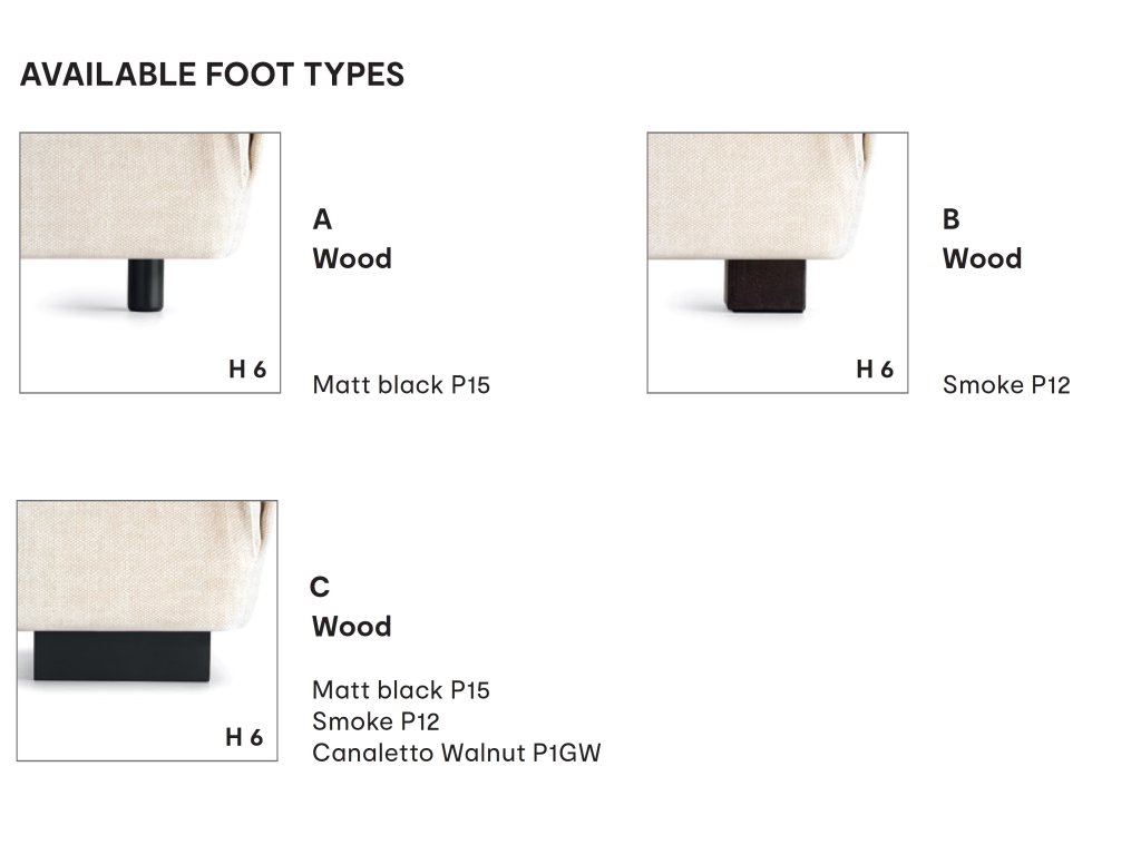 | Provedení nohou C: | matný černý lak, kouřový jasan, ořech |