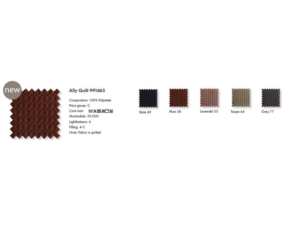 - látkový potah: výběr ze 3 kategorií látek (A-B-C), potah není snímatelný, můžete využít impregnace