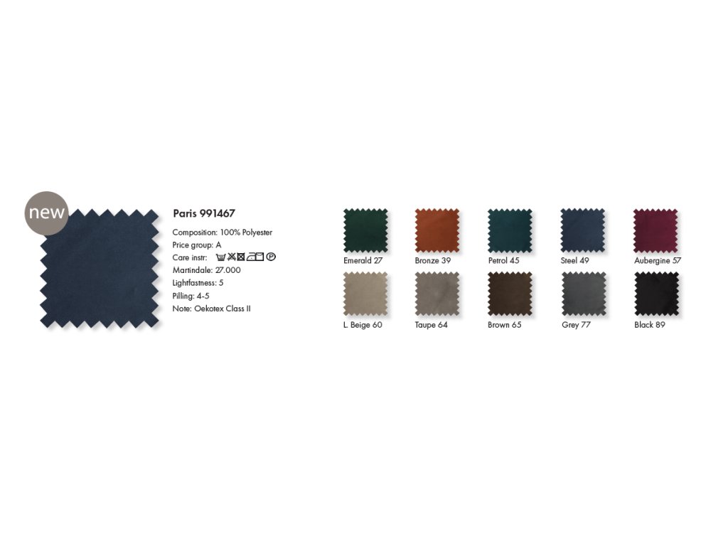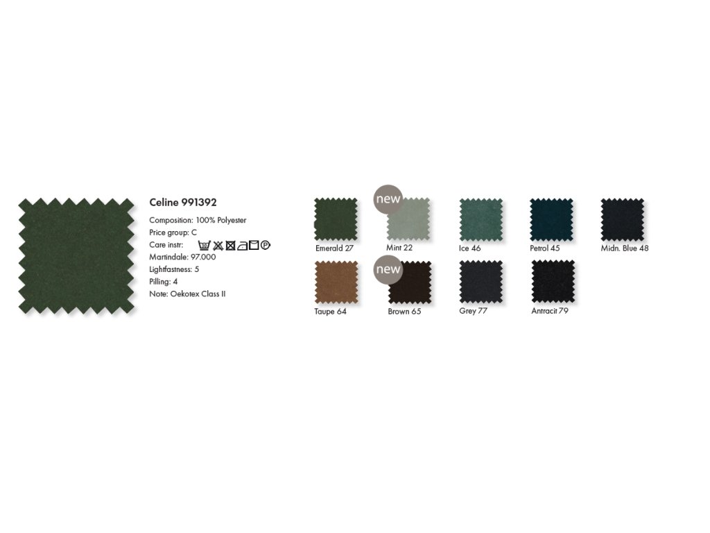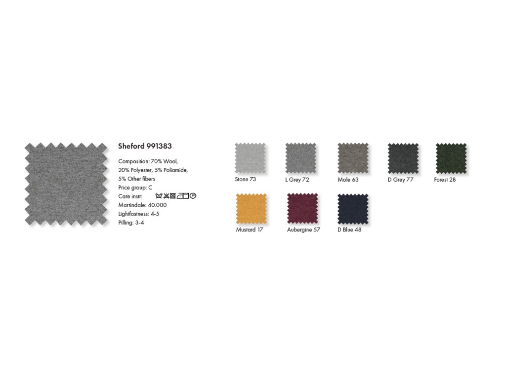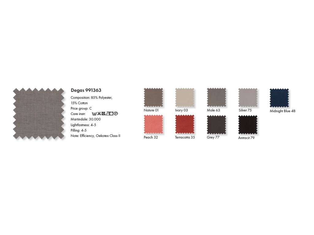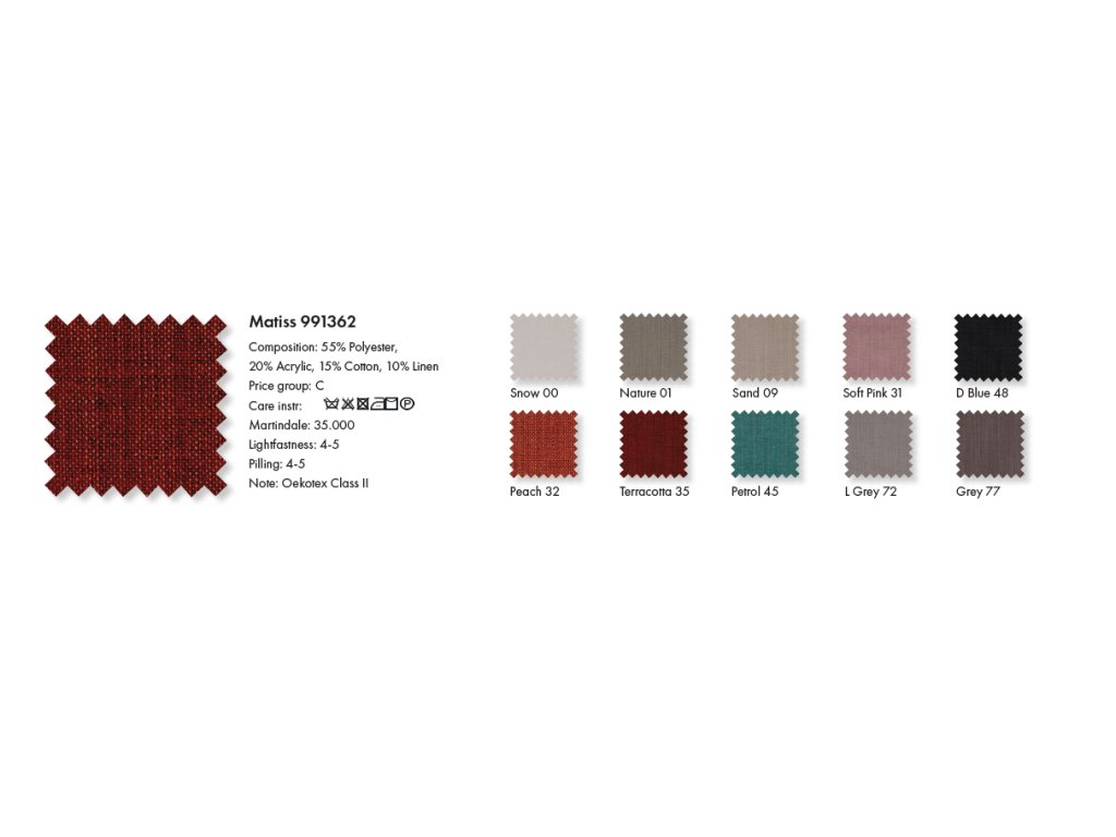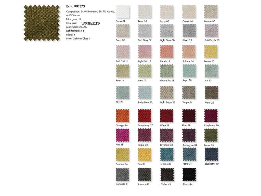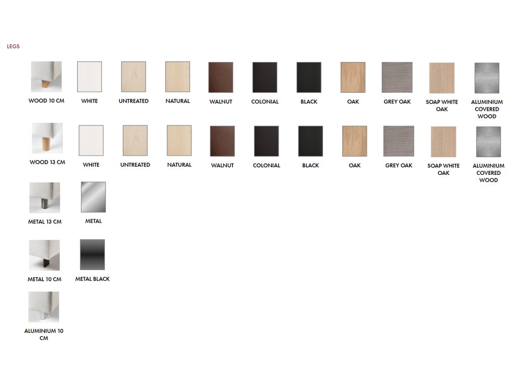 | Barva nohou dřevěných: | černá, bílá, buk lakovaný, buk nemořený, dub lakovaný, dub šedý lakovaný, dub bělený lakovaný, ořech mořený, kolonial mořený (tmavý), hliníkem potažené dřevo |