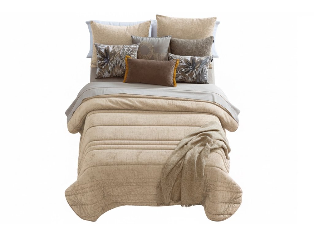 Přehoz na postel Nui Arena, béžový, 270x270 cm, se 2 povlaky na polštáře