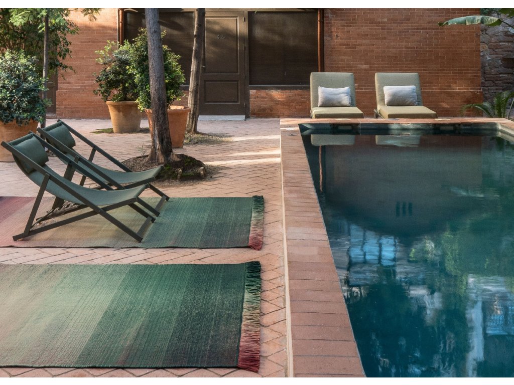 Stejně jako u vnitřních modelů si i tato venkovní verze zachovává svou vynikající jednoduchost, která odráží složitý technický proces k dosažení hustoty a pravidelnosti požadovaného efektu. V každém koberci se sbíhají dva přechody, jeden vertikální a druhý horizontální, ve stejné rovině, pomocí šesti přechodových tónů.